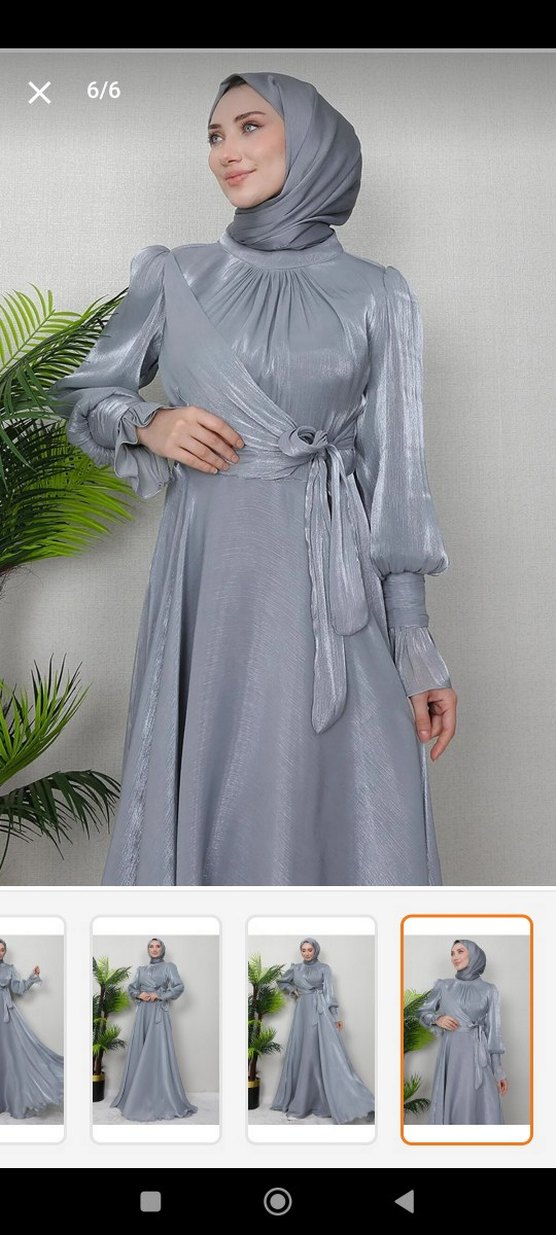 Gri renkte, uzun ve bol kesim abiye elbise. Yüksek yakalı, drapeli tasarıma sahip, askılı kolları ile modern ve sade bir şıklık sunar. 52 / 54 bedene uyumludur 1 kere kuzenimin kınasında giydim şalıyla birlikte veriyorum şal ölçüsü: Metresi 350 liraydı 2buçuk metre şal