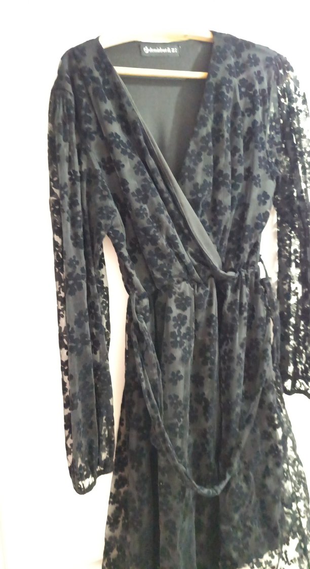 Gri uzun kadın elbise, drapeli tasarım, V yakalı ve bol kesimdir. Yumuşak sentetik kumaştan, ince bağcıklı kollu, hafif batik desenlidir. Gotik ve Paris tarzı karışımıdır. Günlük kullanıma uygundur. ️