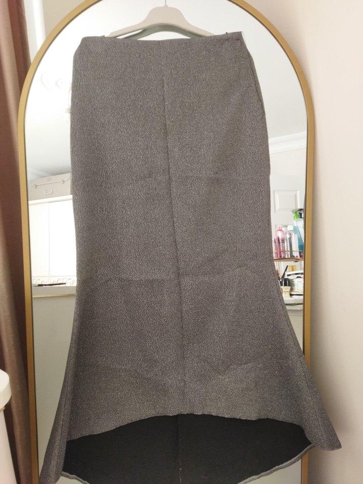 Gri renkte, uzun ve drapeli tasarıma sahip kadın eteği, düzenli kesim ve yumuşak sentetik kumaştan üretilmiştir. Ofis ve iş ortamına uygundur.