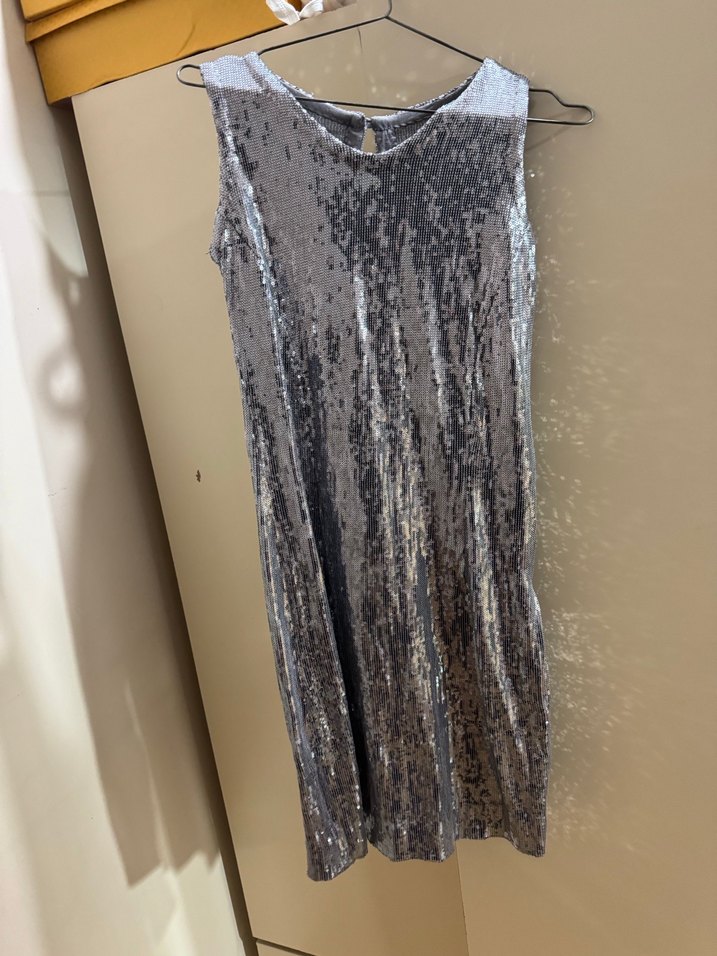 Kolsuz, uzun ve gri renkte olan bu abiye elbise, drapeli detayları ve dar kesimiyle parti için uygundur.39 numara ayakkabıyı da almak isterseniz fiyat500