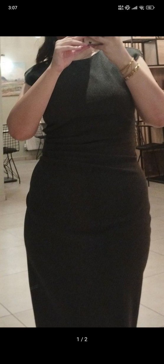 Gri uzun elbise yandan drapeli arkasında da yırtmacı var s-m olur