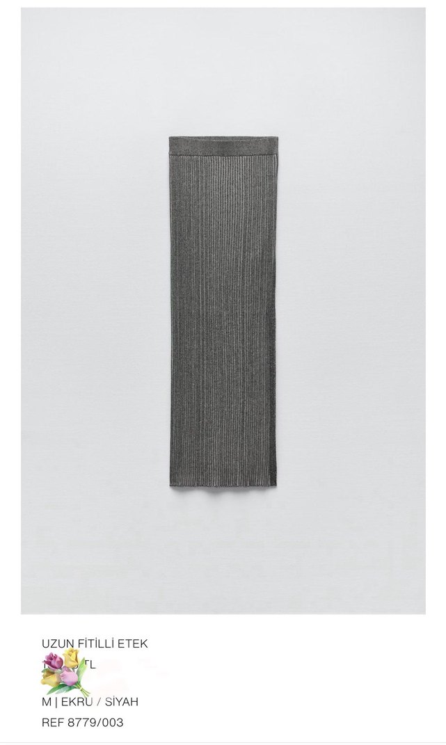 Ribbed dokulu, uzun gri etek. Rahat esneme sağlayan ve formunu koruyan materyale sahiptir. Beden: M