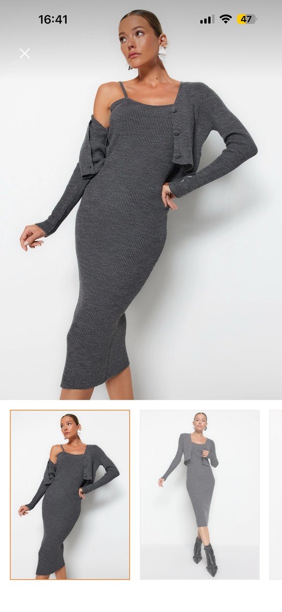 Gri Uzun Hırkalı Triko Elbise