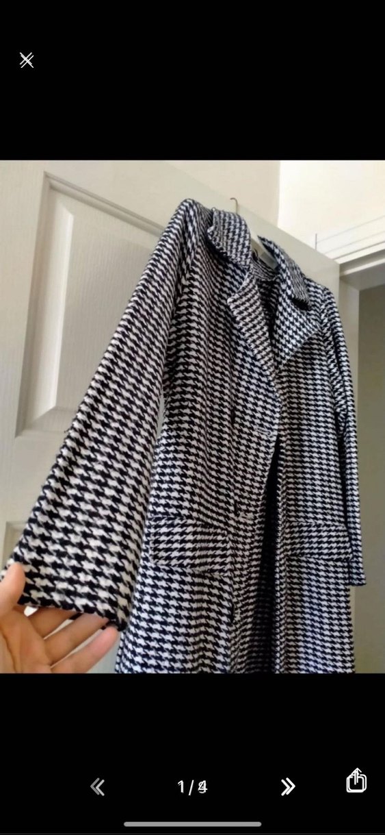 Gri renkli, uzun kadın ceketi, düğmeli ve kesik yaka detaylıdır. Sentetik kumaştan üretilmiş, rahat kesim ve uzun kolludur, günlük kullanıma uygundur.