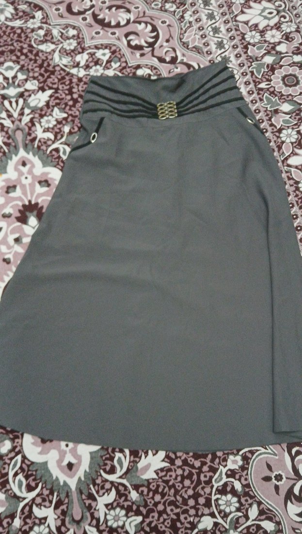 Gri renkte, kemerli ve bol kesim uzun kadın eteği, sentetik kumaştan yapılmıştır. Günlük kullanım için uygun, desenli ve gotik tarzda şık bir seçim. yandaki fermuarı bozulmuştur yaptırmanız gerekiyordur O yüzden uyguna veriyorum