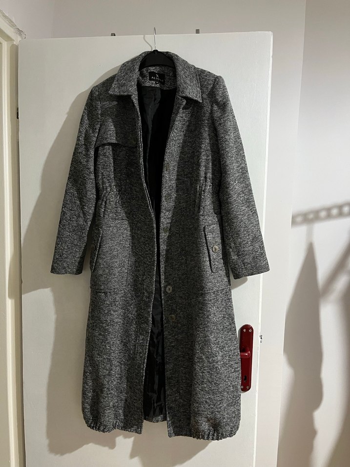 Gri renkte, uzun ve cepli klasik yakalı kadın kabanı. Soğuk havalar için ideal bir dış giyim parçası. 38 bedenim bende de gayet iyi durmakta bundan dolayı 38-40 beden diyebilirim.