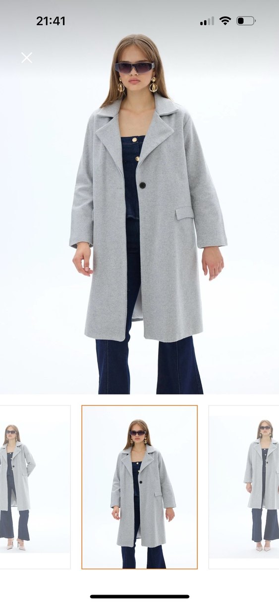 Gri uzun kadın kaban, klasik yaka ve düğme detaylarıyla şık bir görünüm sunar. Sadece bir kez giyildi gönderilince ütülenip gönderilecektir bütün ürünler