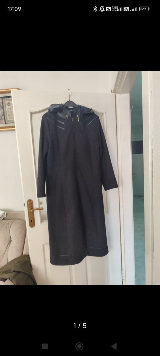Gri uzun kadın kaban, çıtçıtlı yaka ve uzun kolludur. Fermuarlı kapama ve rahat kalıpla, yumuşak sentetik kumaştan üretilmiştir. Sade ve konforlu bir tasarımdır. İki koltuk arası 51 cm,boy 121 cm.Şapkası mevcut.içi astarlı . marka temsili.#kadınkaban #kaban #mont #kadınkaşe #pardesü #pardösü #ferace #kayra #zühre #aker #tesettür #tesettürkaban