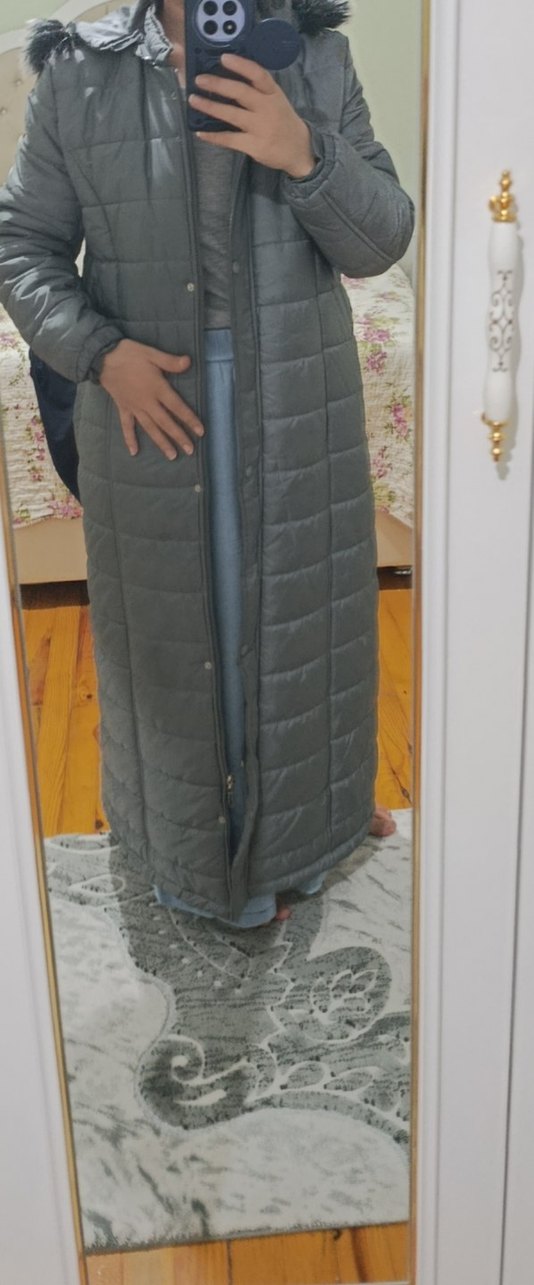 Gri renkli, fermuarlı ve yaka detaylı, uzun, kadın kışlık yelek. Yumuşak sentetik kumaştan, rahat ve şık bir görünüm sunar. göründüğü gibi sadece kemeri