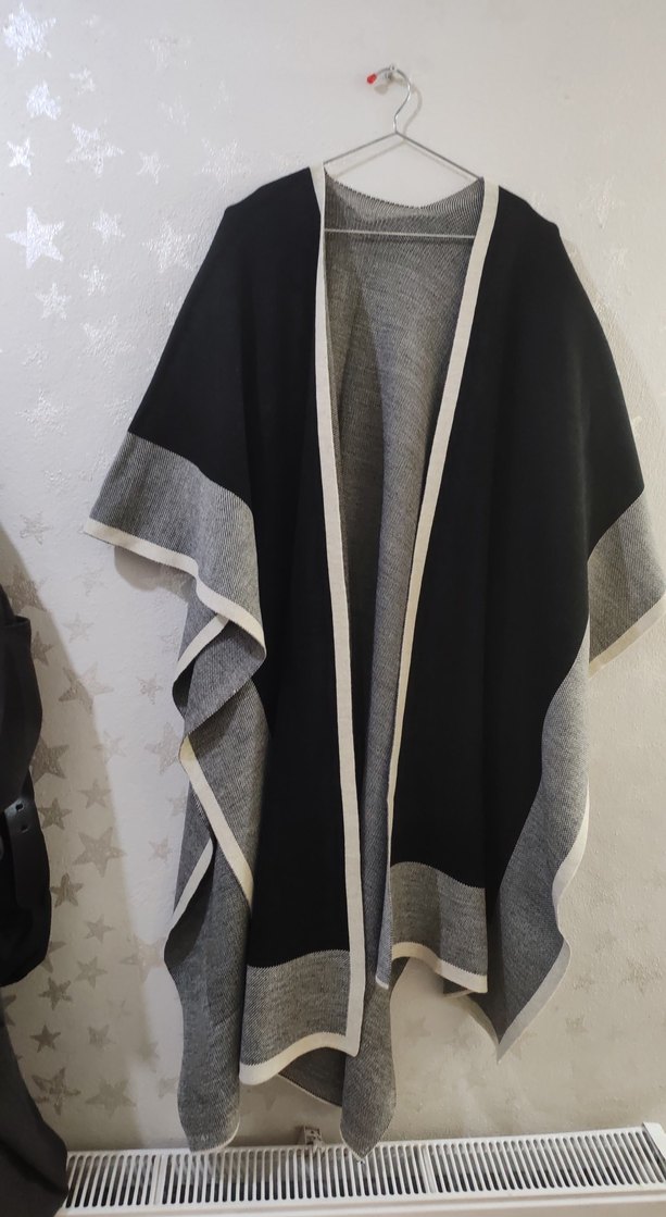 Gri Uzun Kadın Panço Notlu Yaka