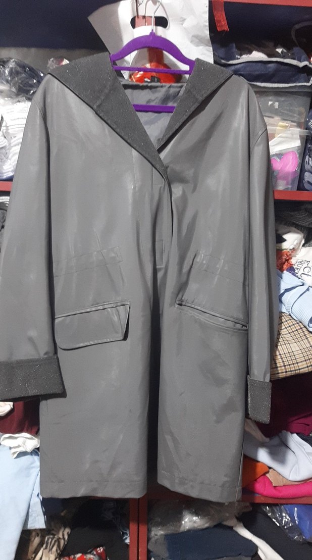 Gri uzun street style kaban, ceket yakalı ve cırt cırtlı Uzun kollu, regular fit, sentetik kumaştan günlük kullanım için uygun.