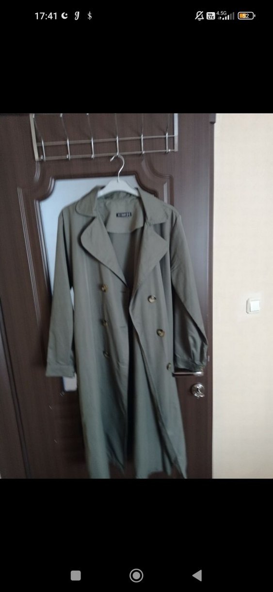 Gri renkte, uzun kesim ve düğmeli ön kısmı olan kadın trençkot. Sentetik kumaştan, regular fit ve desen içermeyen tasarıma sahiptir. ️