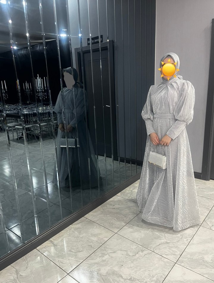 Gri uzun katlı abiye elbise, yüksek yakalı ve askılı kollu, salaş kesimiyle avant-garde düğünler için uygun. Sadece bir kere kardeşimin Kına gecesinde giyildi . *Tadilat, dikim , kesim yapılmadı. *Tertemiz dir. Kuru temizleme yapıldı. *Eşarp , Bone de dahildir . 38-40 uyumludur . Pazarlık yapılır