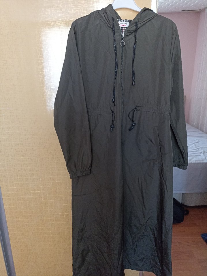 Gri uzun kesim kadın yağmurluk, bol kesim ve drapeli tasarıma, yüksek yaka ve uzun kollara sahiptir. Nefes alan keten kumaştan günlük kullanım için uygundur. ☔