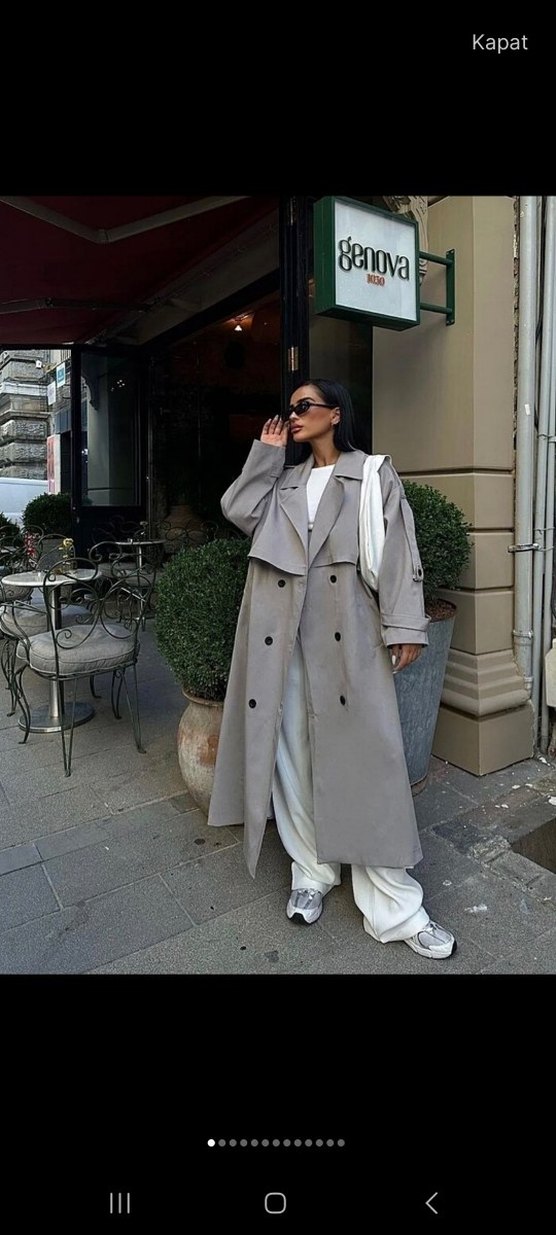 Gri uzun keten trençkot, bol kesim ve kruvaze yaka detaylıdır. Günlük kullanıma uygun, rahat ve şık bir sokak stili parçasıdır. Genova markasıdır. etiketle gönderilecek sıfır üründür