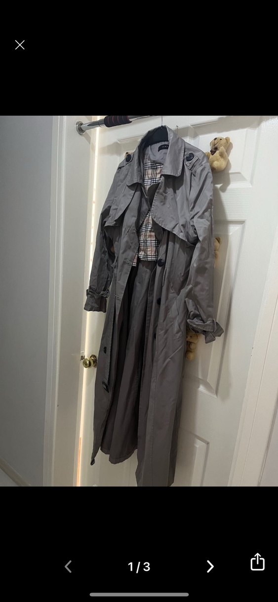 Gri renkte, uzun keten kumaştan yapılmış, bol kesim ve kemerli kadın trençkot. Düğmeli, yaka detaylı ve uzun kolludur, günlük ve sokak stiline uygundur. Şems marka 44 yazıyor ama ben 40 bedenim güzel duruyor