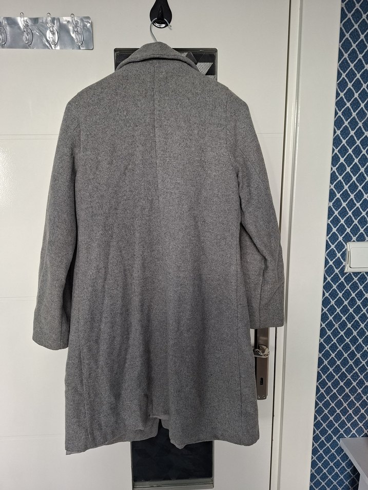 Gri uzun kaban, klasik tasarımı ve yumuşak dokusuyla sıcaklık sağlar. Sade arka detayı ve oturaklı kesimi vardır. Soğuk havalar için uygundur.