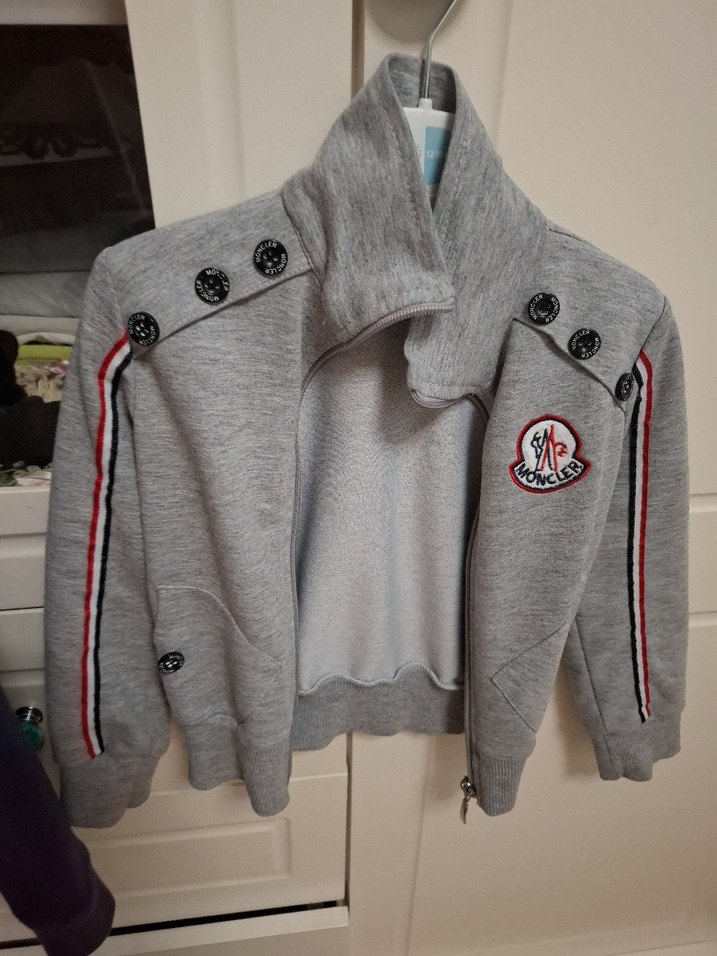 Gri renkli, . Kollarında baskılı çizgiler ve Moncler logo detayı bulunur. Yumuşak ve sıcak kumaştan üretilmiştir. 2 yas icin uyundur