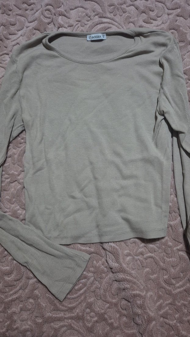 Gri renkte, keten kumaştan, uzun kollu ve yuvarlak yakalı, salaş kesim kadın kazak. Düz ve basic, günlük sokak stili için uygundur.