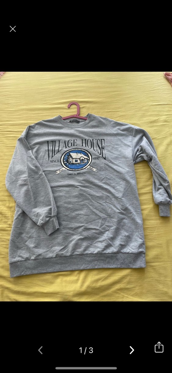Gri renkte, uzun kollu ve yuvarlak yakalı kadın sweatshirtü. Yumuşak ve sıcak kumaştan, baskılı desenli, rahat ve trend sokak stili için uygun.