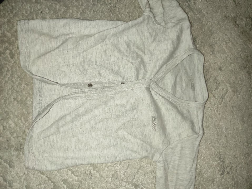 Gri renkli, uzun kollu ve düğmeli bebek body. Keten kumaştan, sade ve desensiz tasarıma sahip.