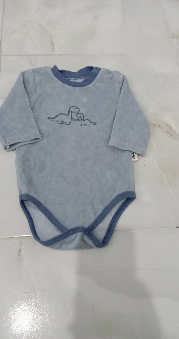 Gri renkli, uzun kollu, yuvarlak yakalı ve düğmeli bebek body. Yumuşak ve sıcak kumaşıyla rahat kullanım sağlar.