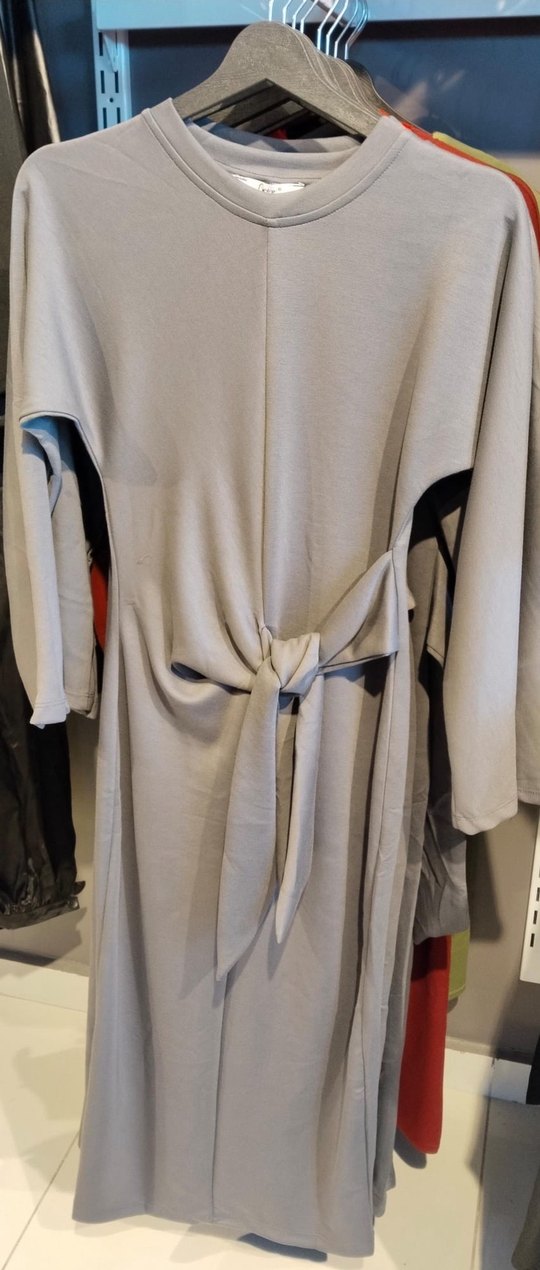 Gri Uzun Kollu Boğazlı Hemşirelik Sabahlığı