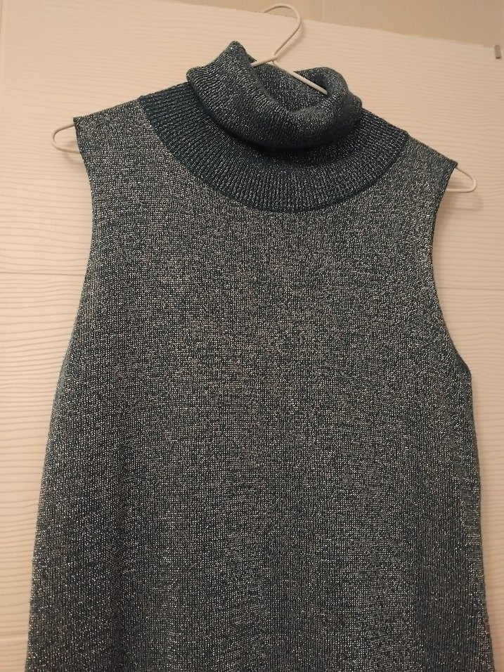 Boğazlı, kolsuz, uzun kesim ve fitted kesime sahip gri triko süveter, günlük rahat sokak stiline uygundur. Hafif simlidir.