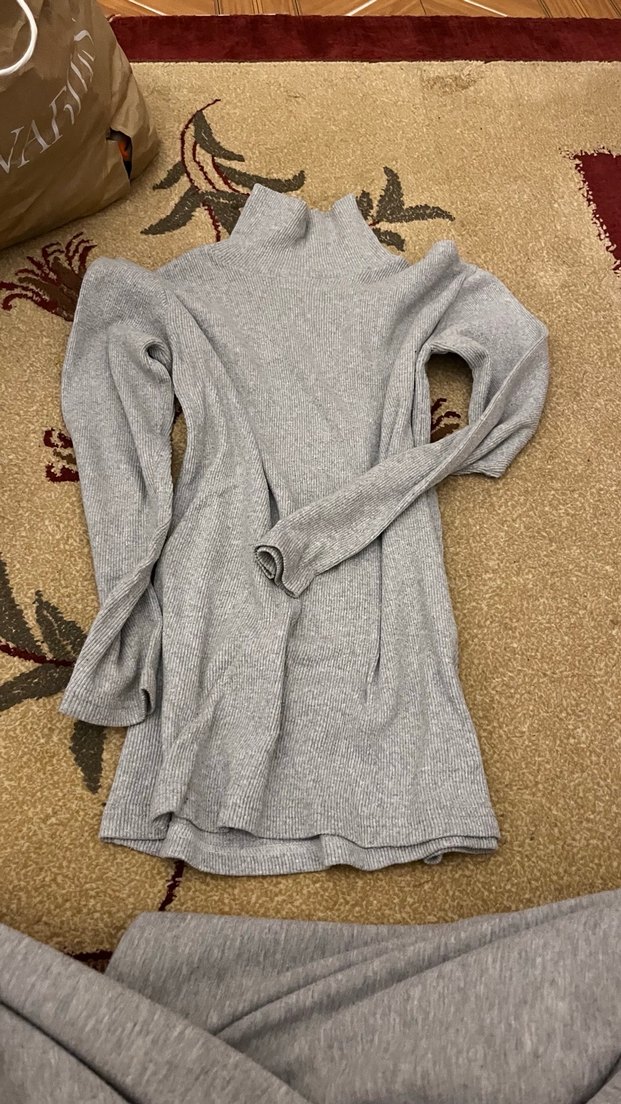 Gri renkte, uzun boy ve bol kesim boğazlı triko kazak. Keten dokuması ile rahat ve günlük kullanıma uygun bir modeldir.