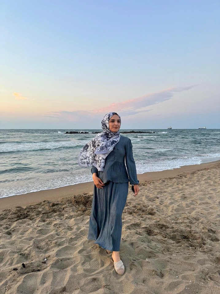Gri renkli, uzun kollu ve bohem tarzda, salaş kesim, balıkçı yaka etekli takım. Bir kere giyildi Çift beden S-M Marka temsili