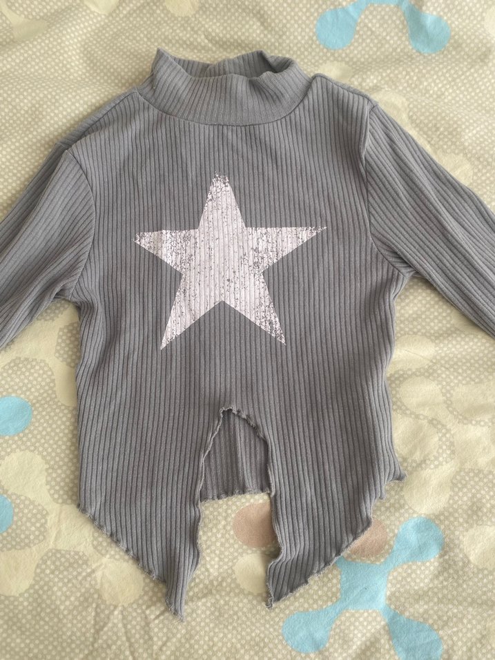 Gri renkli, triko kumaştan yapılmış kız çocuk uzun kollu balıkçı yaka gömlek. Baskılı yıldız deseni ve benzersiz kesimiyle trend bir görünüme sahiptir. ⭐