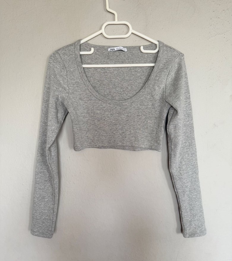 Gri Uzun Kollu Crop Top