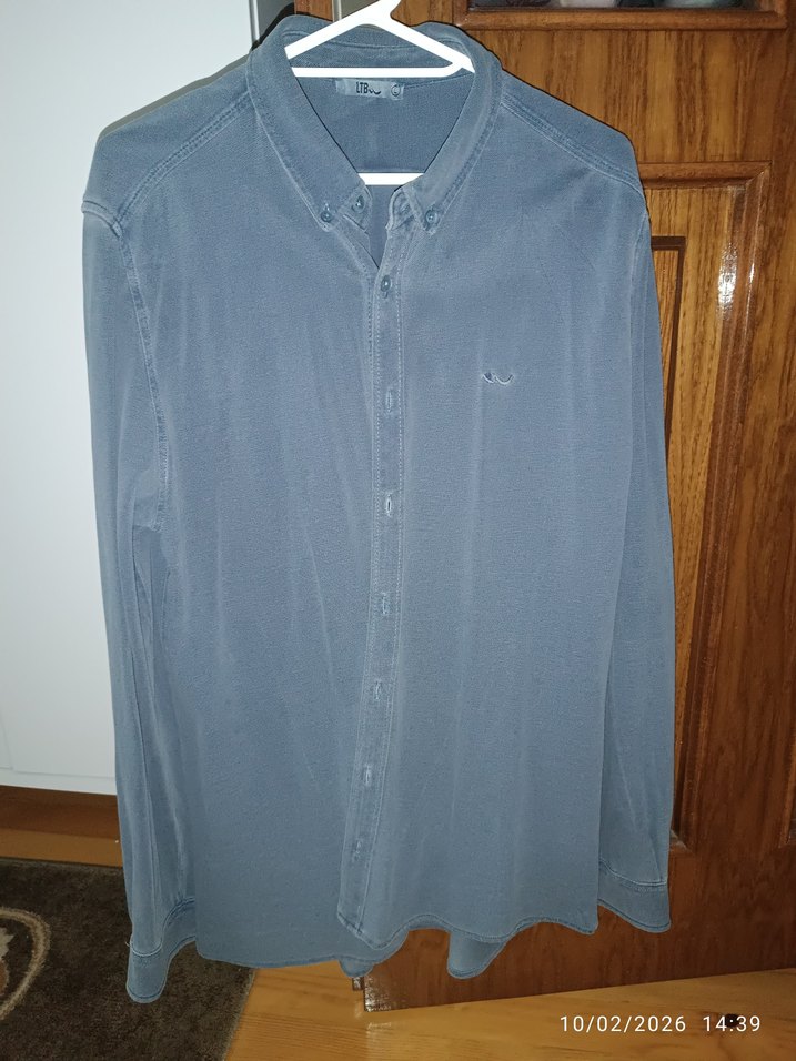 Gri renkli denim erkek gömlek, uzun kollu ve düğmeli. Normal boyda, bol kesim ve yakasında kesimli detay bulunur. Desensiz, günlük rahat stil için uygundur.