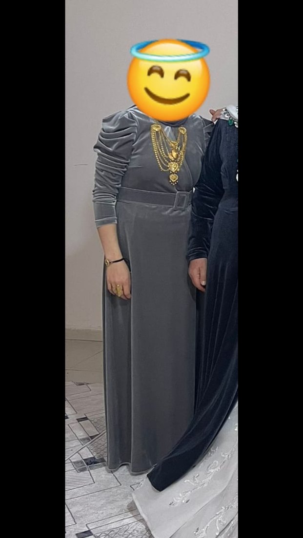 Gri Uzun Kollu Drapeli Kadın Abiye Elbise