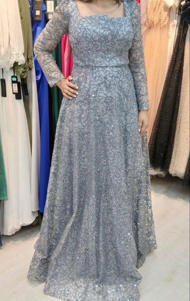 Gri parlak a kesim abiye Parlak kumaş söz veya nişanlık için uygundur 36-38-42 bedenler mevcuttur