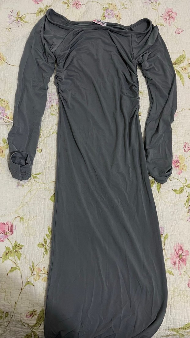 Gri Uzun Kollu Drapeli Kadın Elbise
