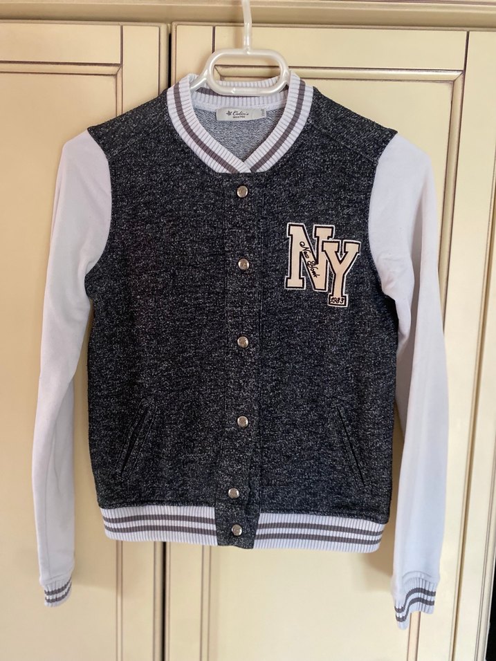 Gri denim kumaştan, uzun kollu ve düğmeli, baskılı 'NY' detaylı, bisiklet yaka, günlük kullanıma uygun, sokak tarzı cocuk ceket.