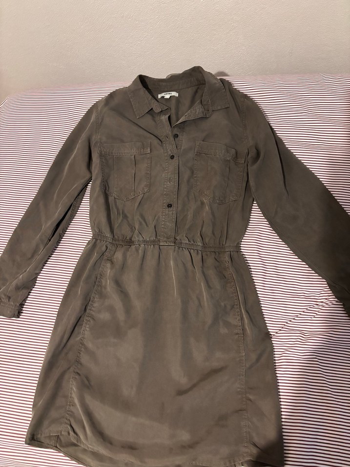Gri Uzun Kollu Düğmeli Kadın Elbise