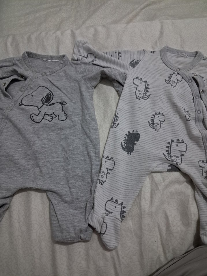 Gri renkli, uzun kollu erkek bebek tulumları. Yumuşak ve sıcak kumaş, örme detaylar ve baskılı sokak stili desenleri içerir. ikili fiyat