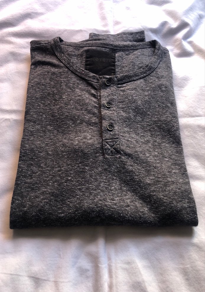 Gri renkte, yımuşak ince kumaştan yapılmış, uzun kollu ve düğmeli önü olan bol kesim erkek bluzu. Normal boyda ve sade tasarımlı, günlük sokak stili için uygundur. Koton marka