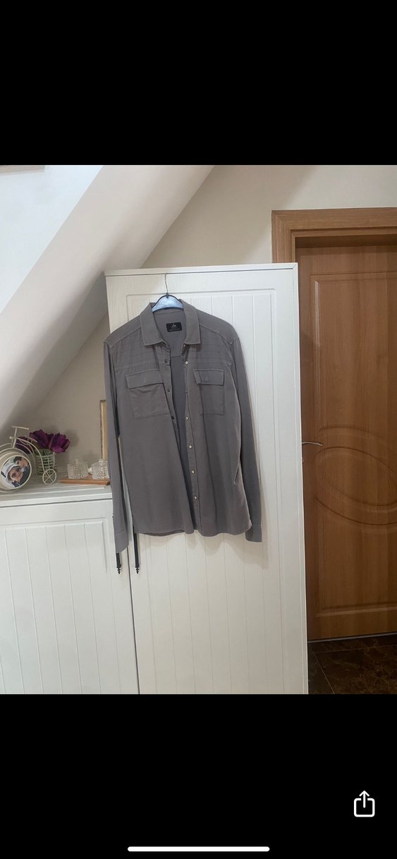 Gri renk, keten kumaştan, düğmeli ve çıtçıtlı, uzun kollu erkek gömleği. Notlu yaka ve göğüs cepleri ile gündelik rahat stil için uygundur.