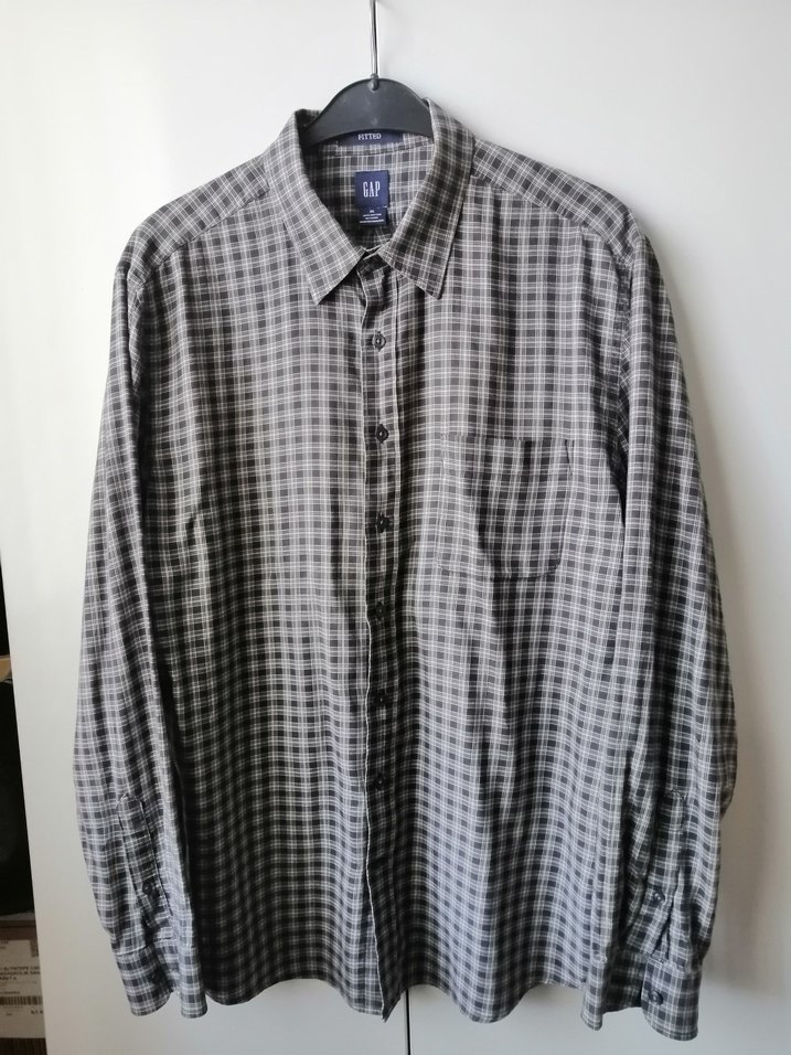 Gri renkli, düğmeli önü ve yakalı, keten kumaştan uzun kollu erkek gömlek. Rahat kesimi ve günlük sokak stiliyle öne çıkar.