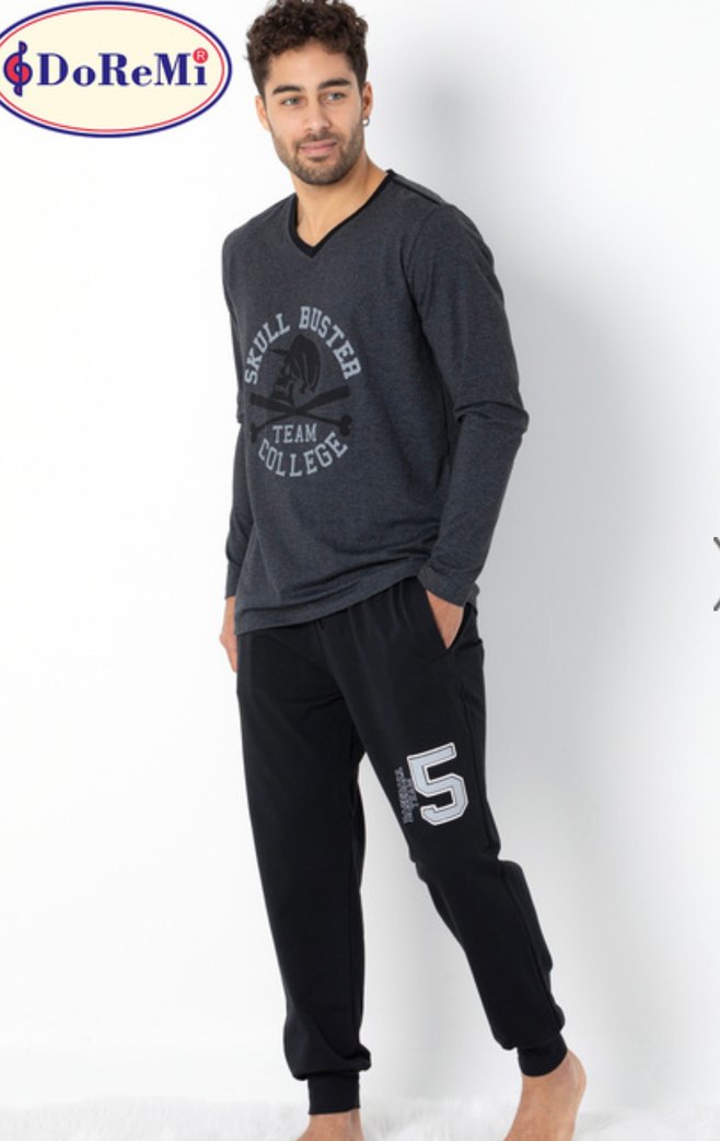 Gri renkli, uzun kollu ve yuvarlak yakalı erkek pijama takımı. Üstü baskılı, altı siyah ve üzerinde "5" rakamı baskılıdır. Örme kumaştan üretilmiştir.