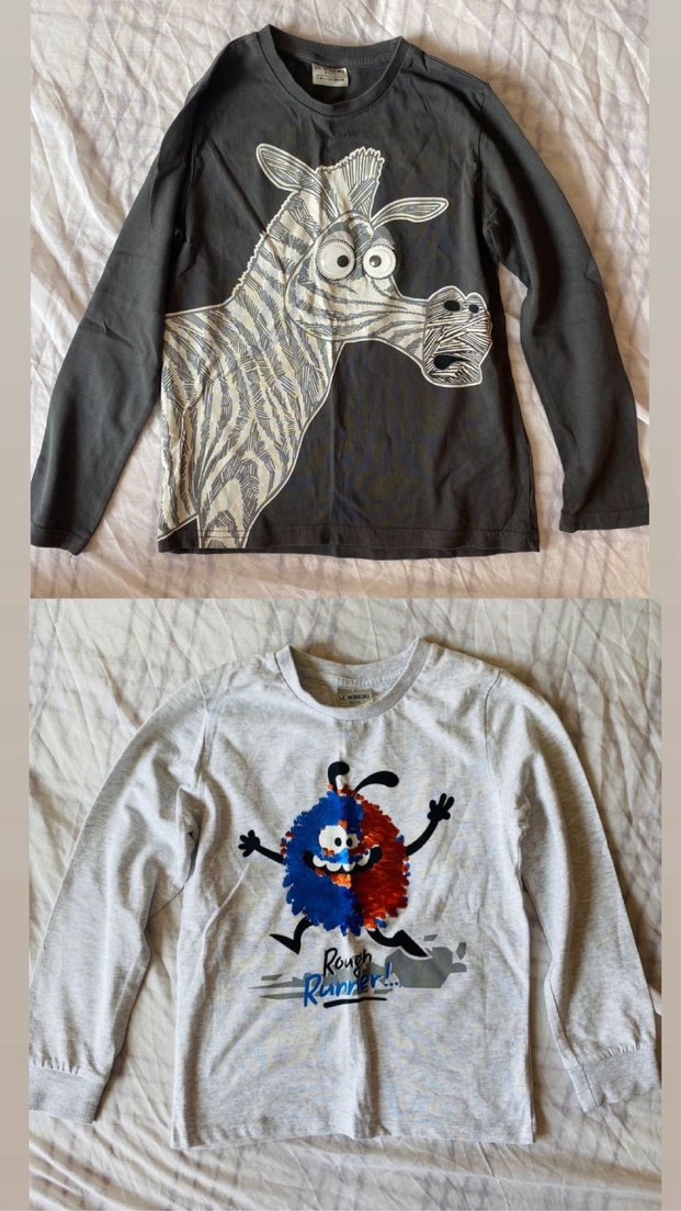 Gri uzun kollu erkek tişörtleri, bol kesim ve bisiklet yaka ile tasarlanmıştır. Biri koyu renkte zebra baskılı, diğeri açık gri renkli karakter baskılıdır. Yumuşak ve sıcak örme kumaştan üretilmiştir.