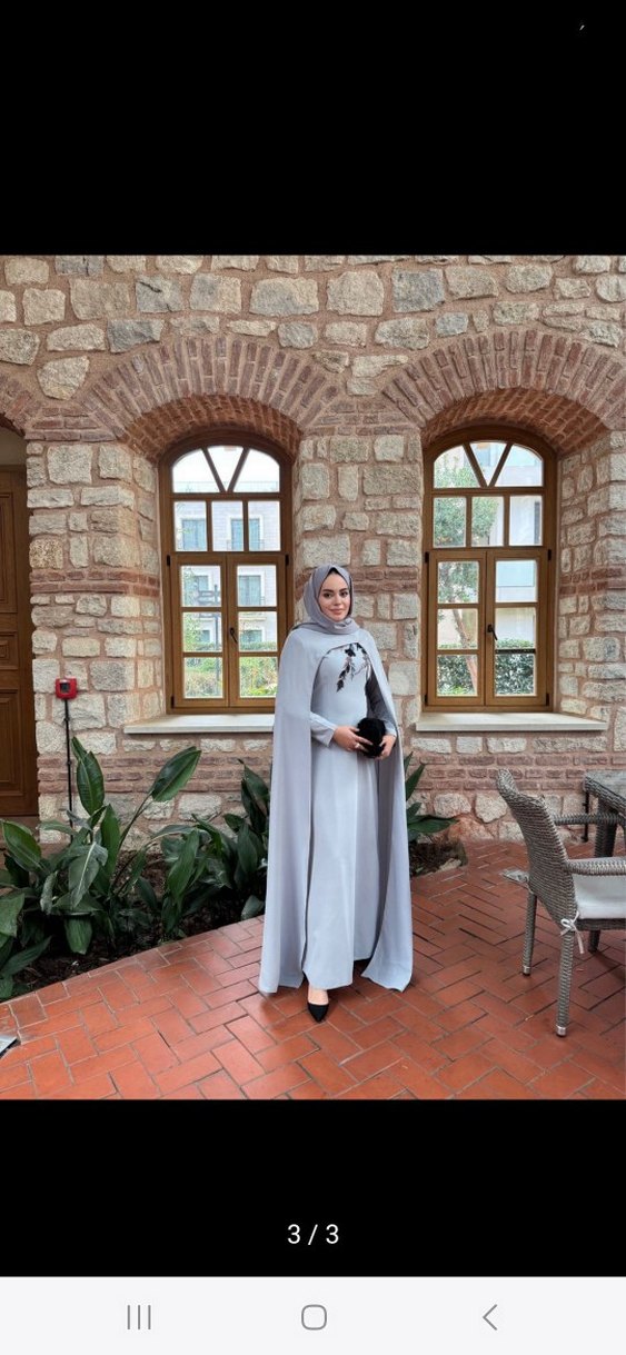 Gri renkte, etnik desenli uzun kollu, regular fit kadın elbise. Minimalist ve geleneksel tarzda, uzun boyda tasarlanmıştır. satılık