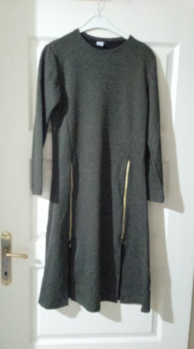 Gri Uzun Kollu Fermuarlı Kadın Triko elbise