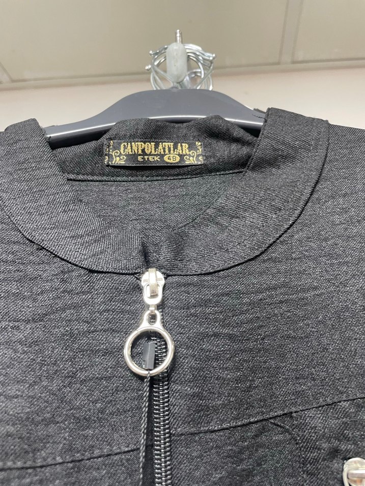 Fermuarlı önü ve yuvarlak yaka detaylı, nakışlı gri renk uzun kollu, dar kesim kadın kazak. Yumuşak sentetik kumaştan, rahat biker tarzı.