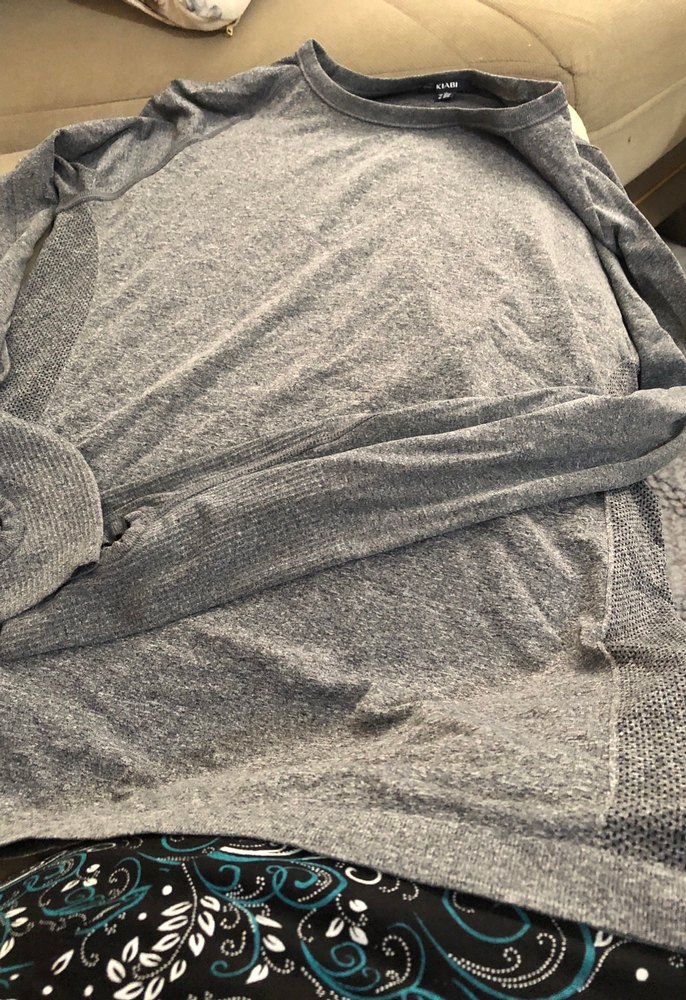 Gri renkte, uzun kollu ve yuvarlak yakalı hamile gömleği. Yumuşak keten kumaştan, bol kesim ve drapeli tasarıma sahiptir.