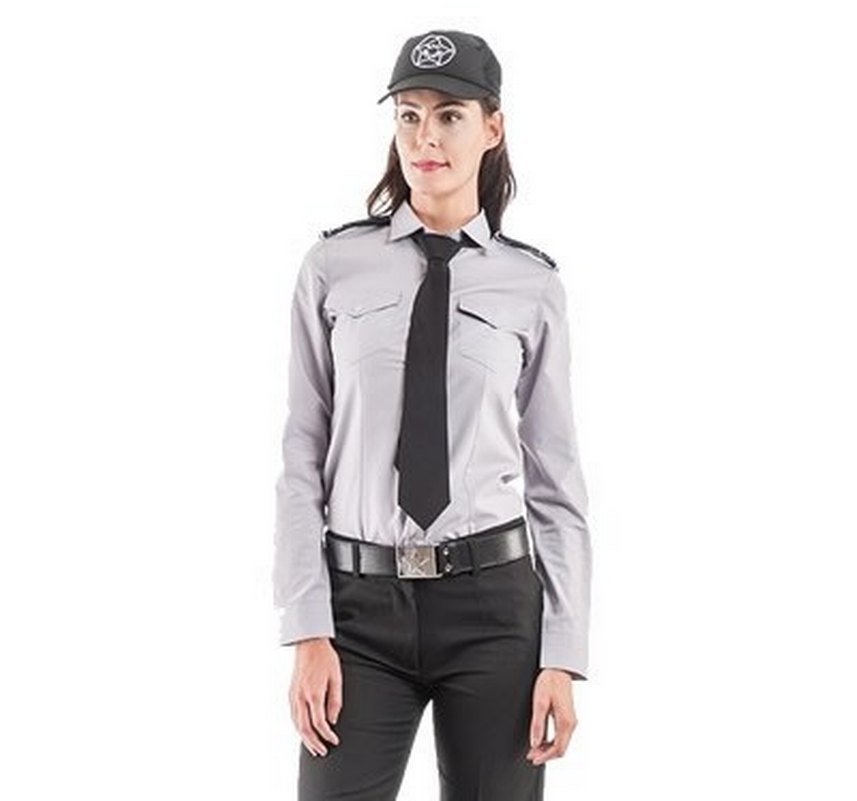 Gri Uzun Kollu Kadın Güvenlik Gömleği