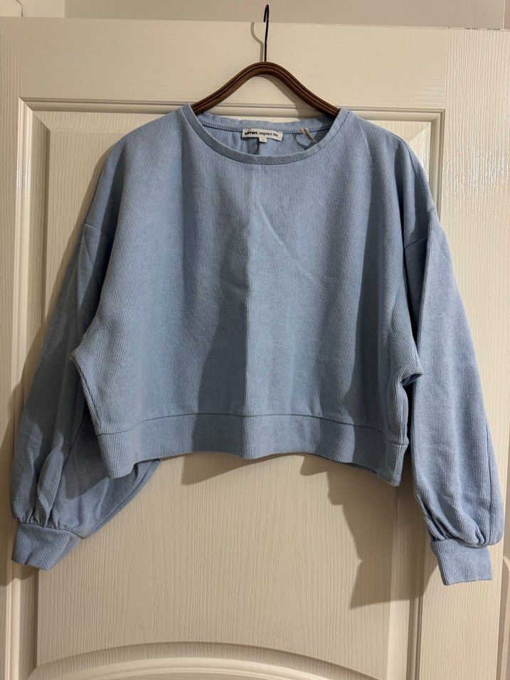 Gri denim kumaştan, uzun kollu ve bisiklet yaka kadın sweatshirt. Rahat ve normcore tarzıyla günlük kullanıma uygun.takım gönderilecektir altı İspanyol bol kesimdir